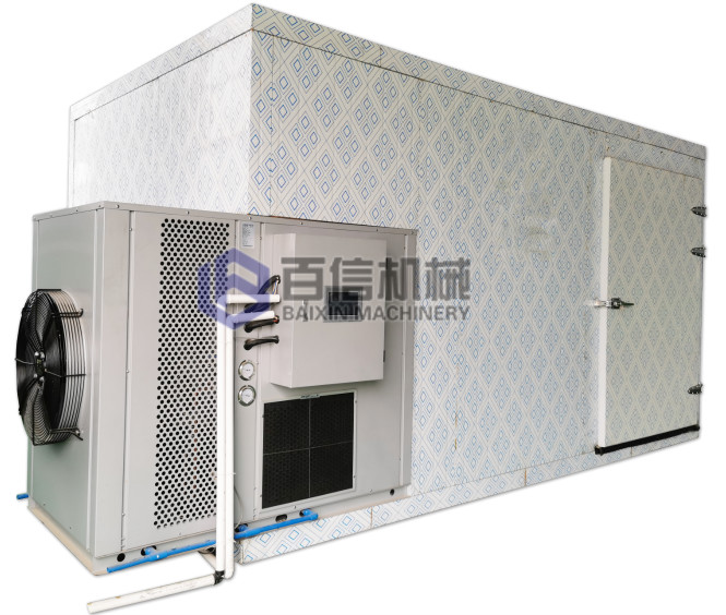 箱式副食品烘干機是百信機械根據用戶實踐改進的有專利證書的農副產品烘干設備,全套設備包含主機、壓縮機、室外機、管路等。