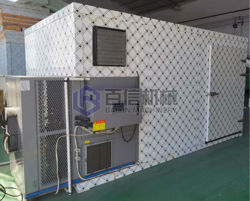 箱式海產品烘干機是百信機械根據用戶實踐改進的有專利證書的農副產品烘干設備,全套設備包含主機、壓縮機、室外機、管路等。