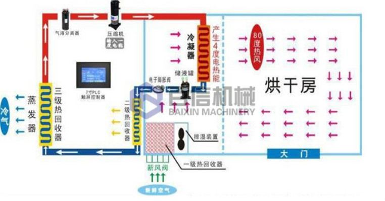 2、采用回?zé)嵫h(huán)熱泵除濕方式,拓寬了除濕機(jī)在工業(yè)干燥領(lǐng)域的應(yīng)用,干燥性能比普通熱泵除濕干燥節(jié)能30%以上,大大節(jié)約運(yùn)行費(fèi)用;